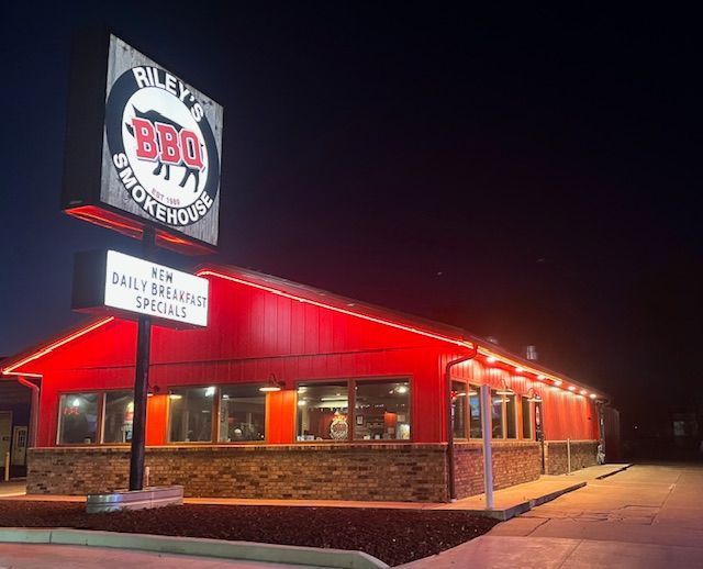 We love supporting local businesses as they support us. These exterior lighting upgrades make an awesome presence at night for this local BBQ restaurant.